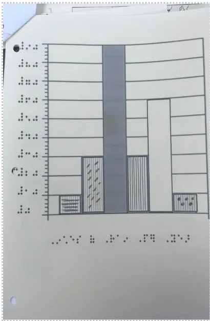 To ensure accessibility, all labels and key information would be provided in Braille. This would enable users to extract information about the visualization effortlessly.